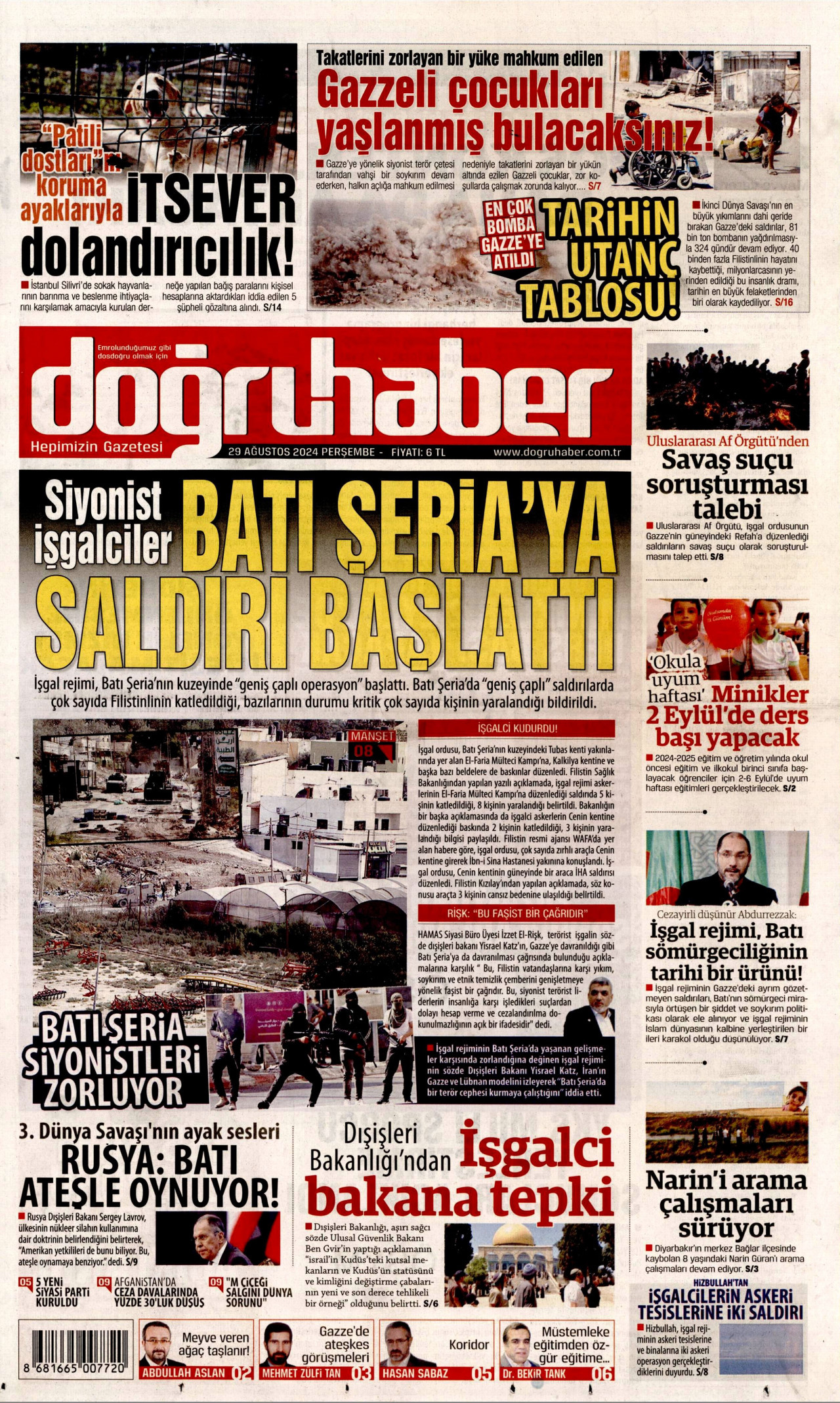DOĞRU HABER Gazetesi 28 Ağustos 2024, Çarşamba Günü Manşeti