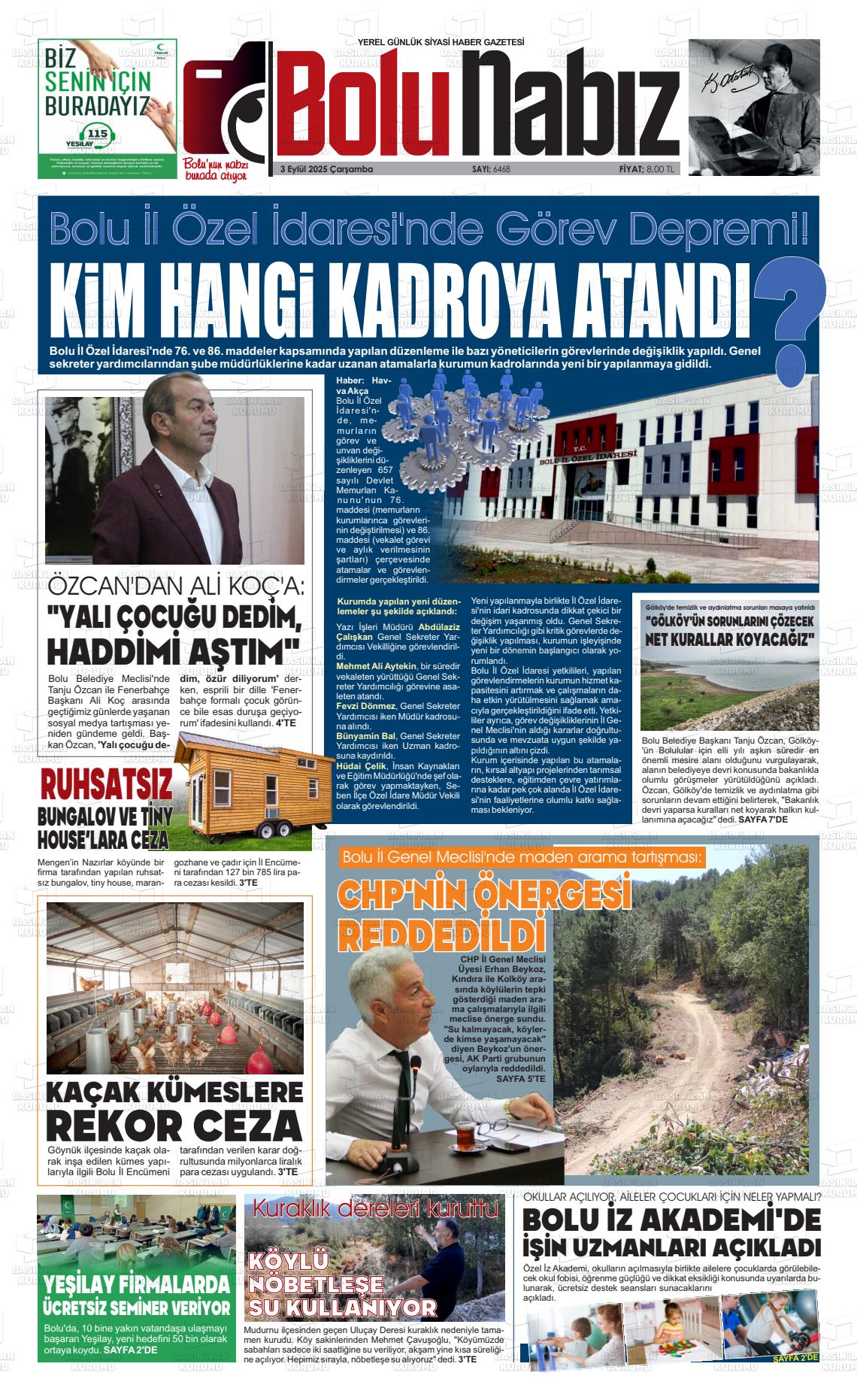 Bolu Yerel Gazeteleri 09 Aralık 2025, Salı Günü Manşeti