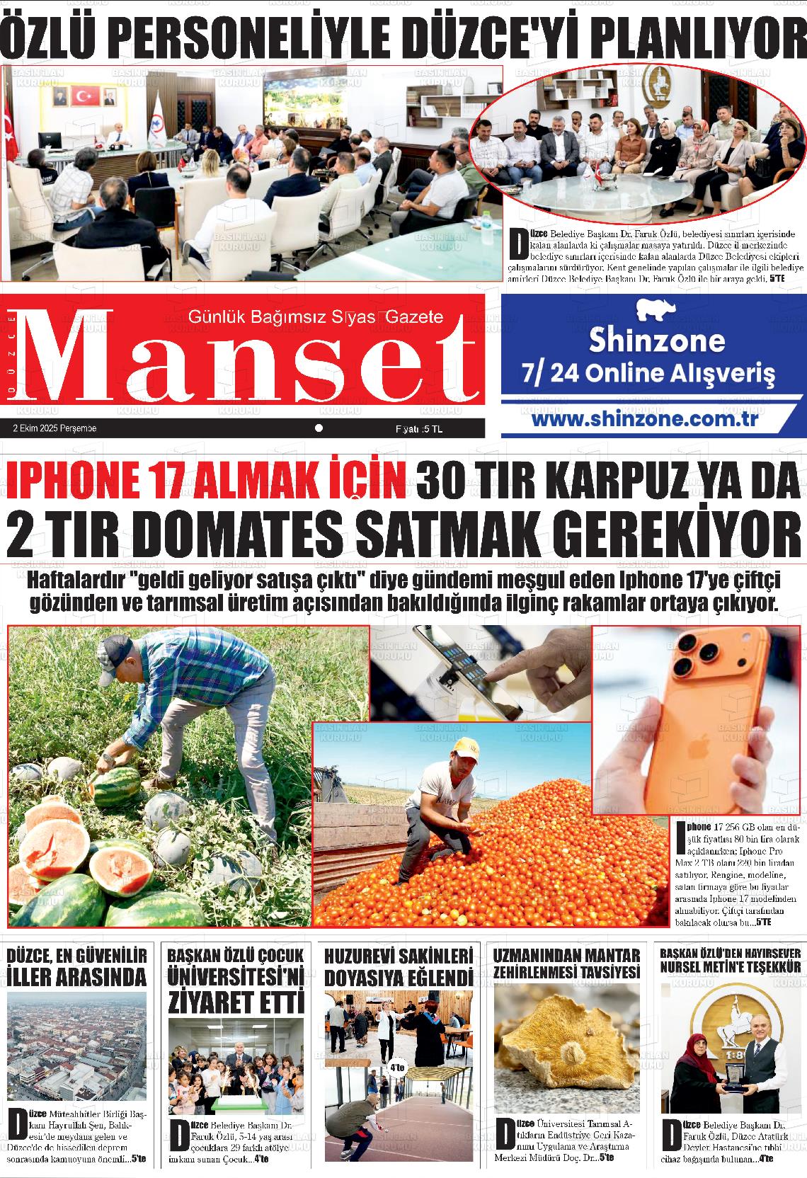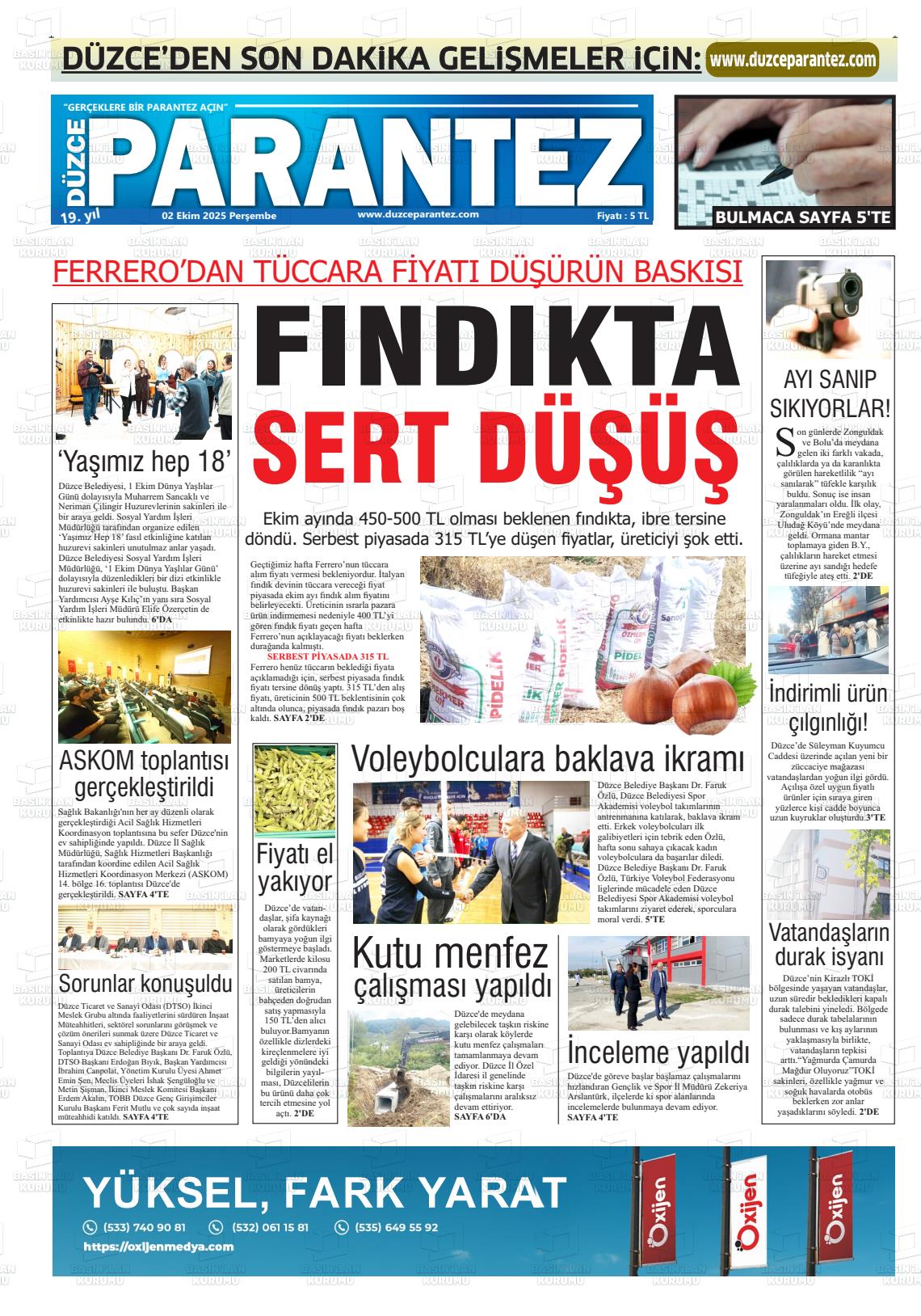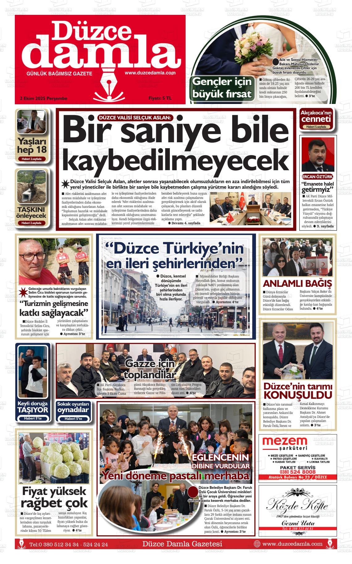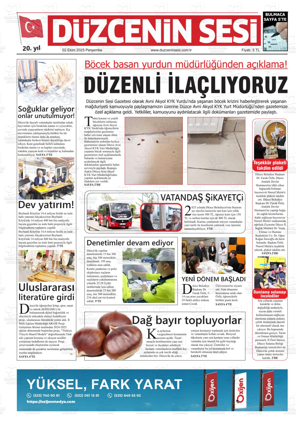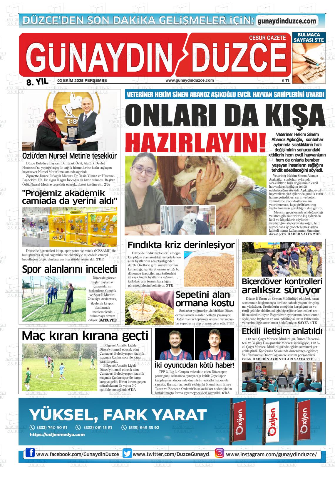 Düzce Yerel Gazeteleri 09 Aralık 2025, Salı Günü Manşeti