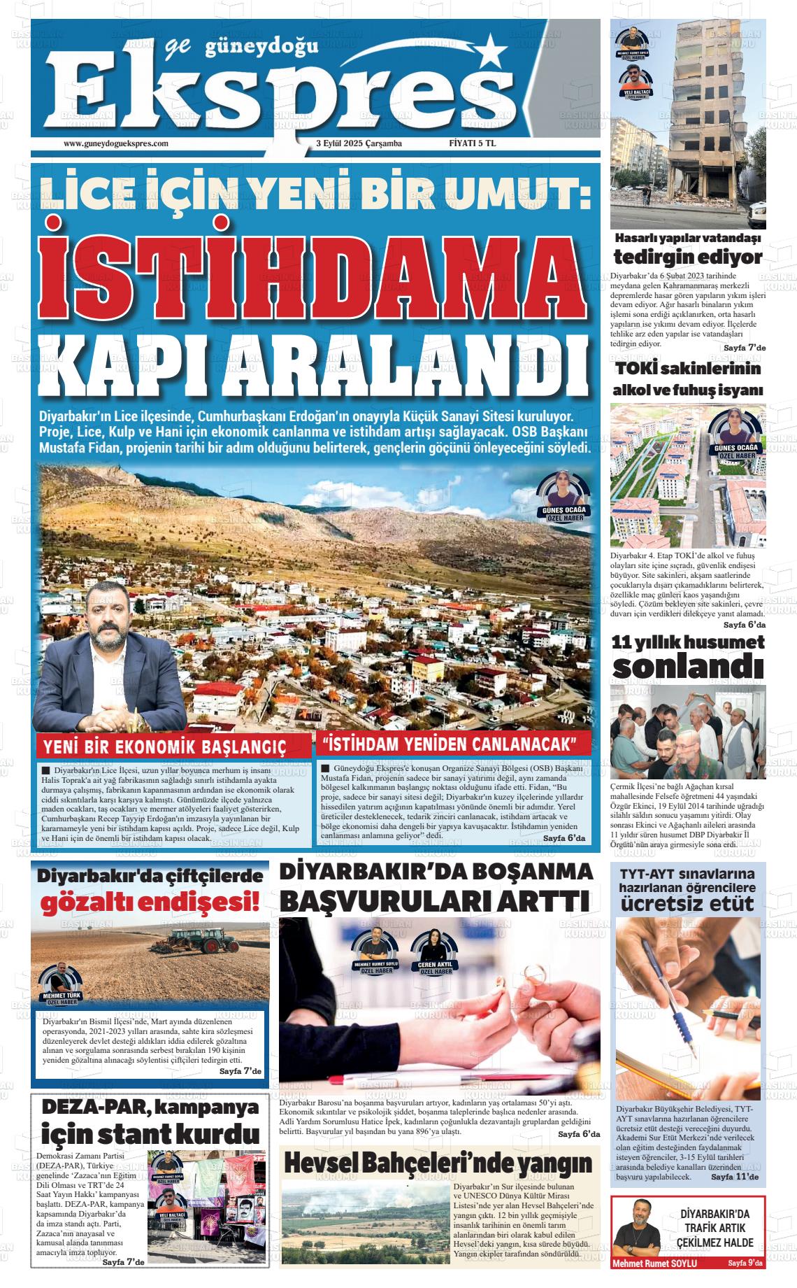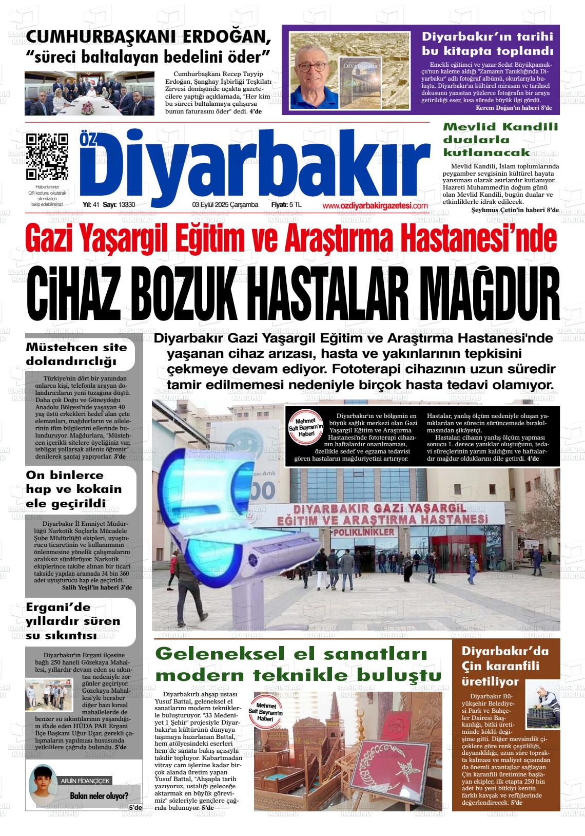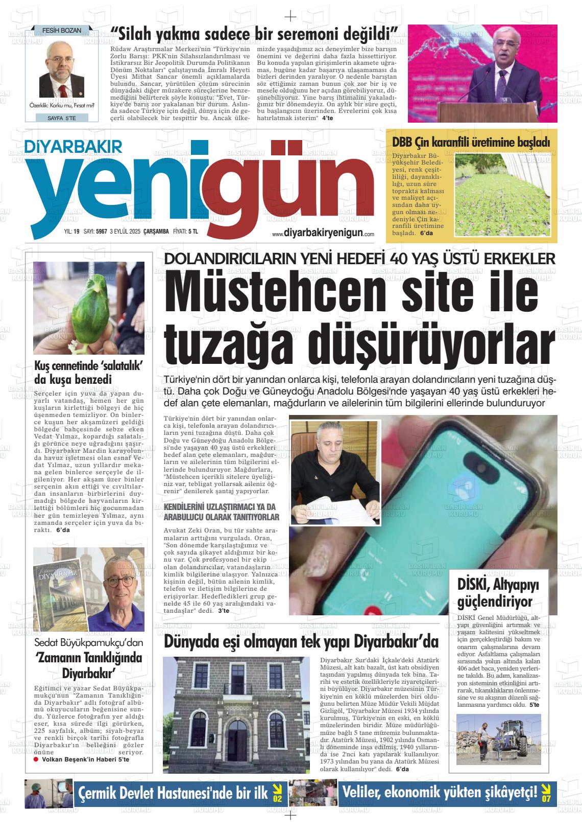 Dİyarbakır Yerel Gazeteleri 09 Aralık 2025, Salı Günü Manşeti