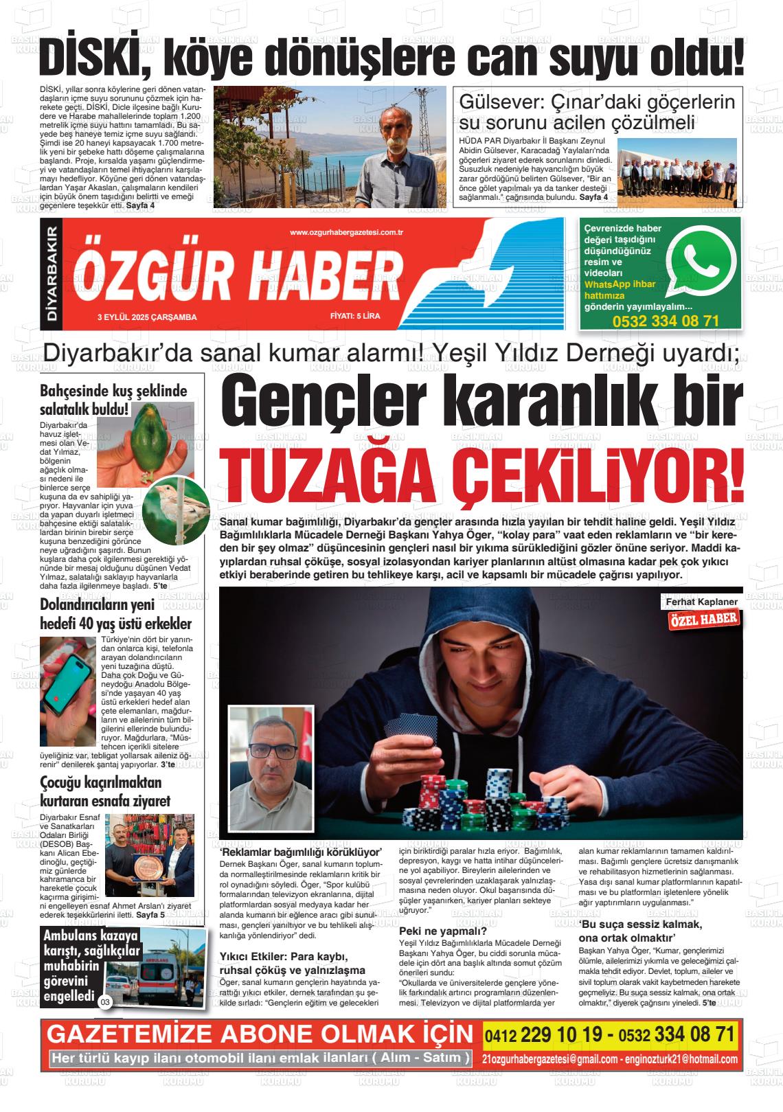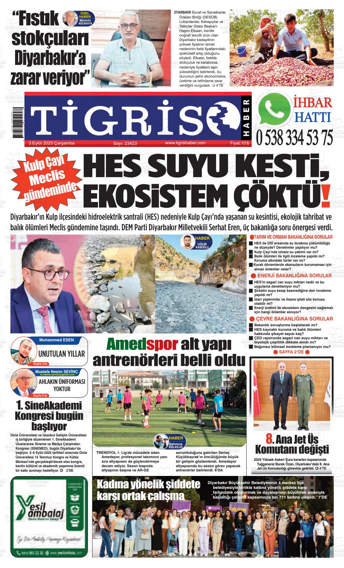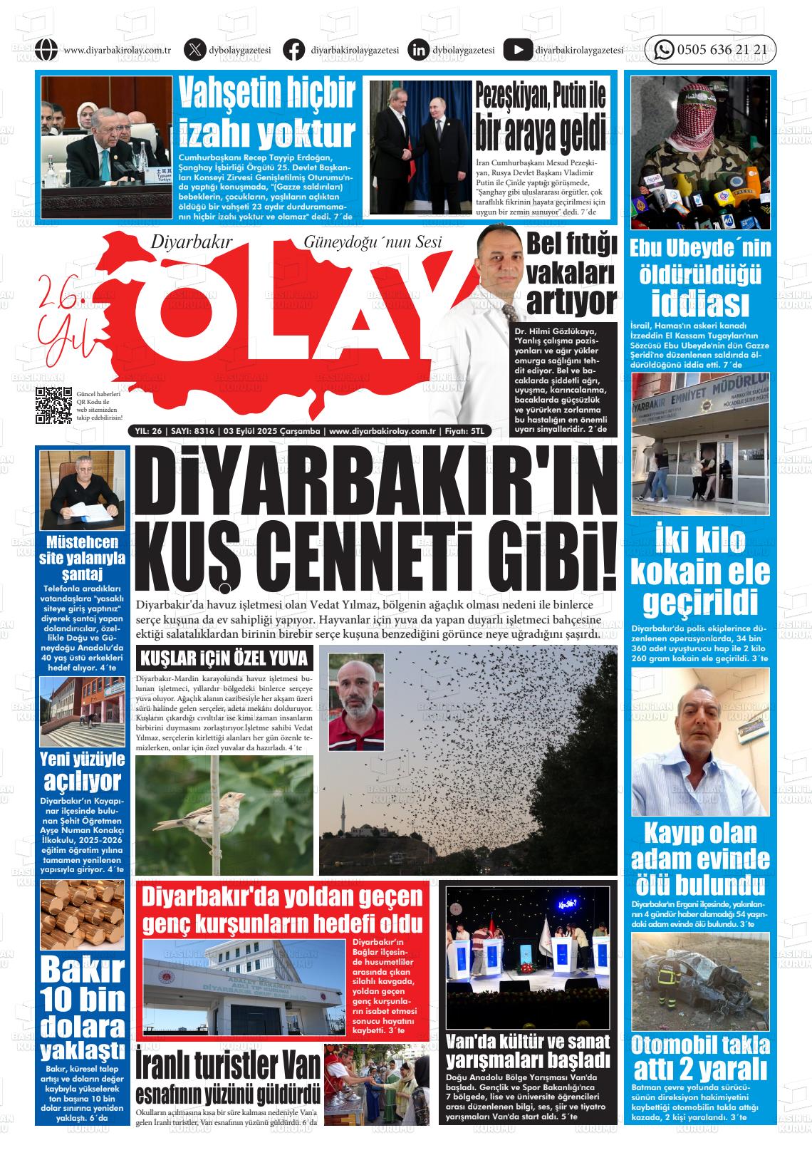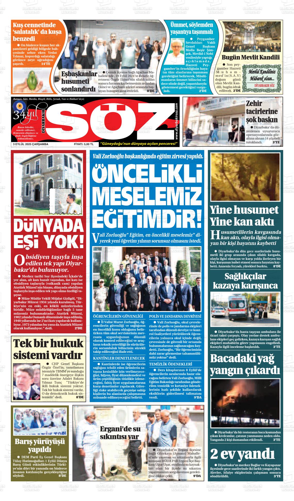 Dİyarbakır Yerel Gazeteleri 09 Aralık 2025, Salı Günü Manşeti