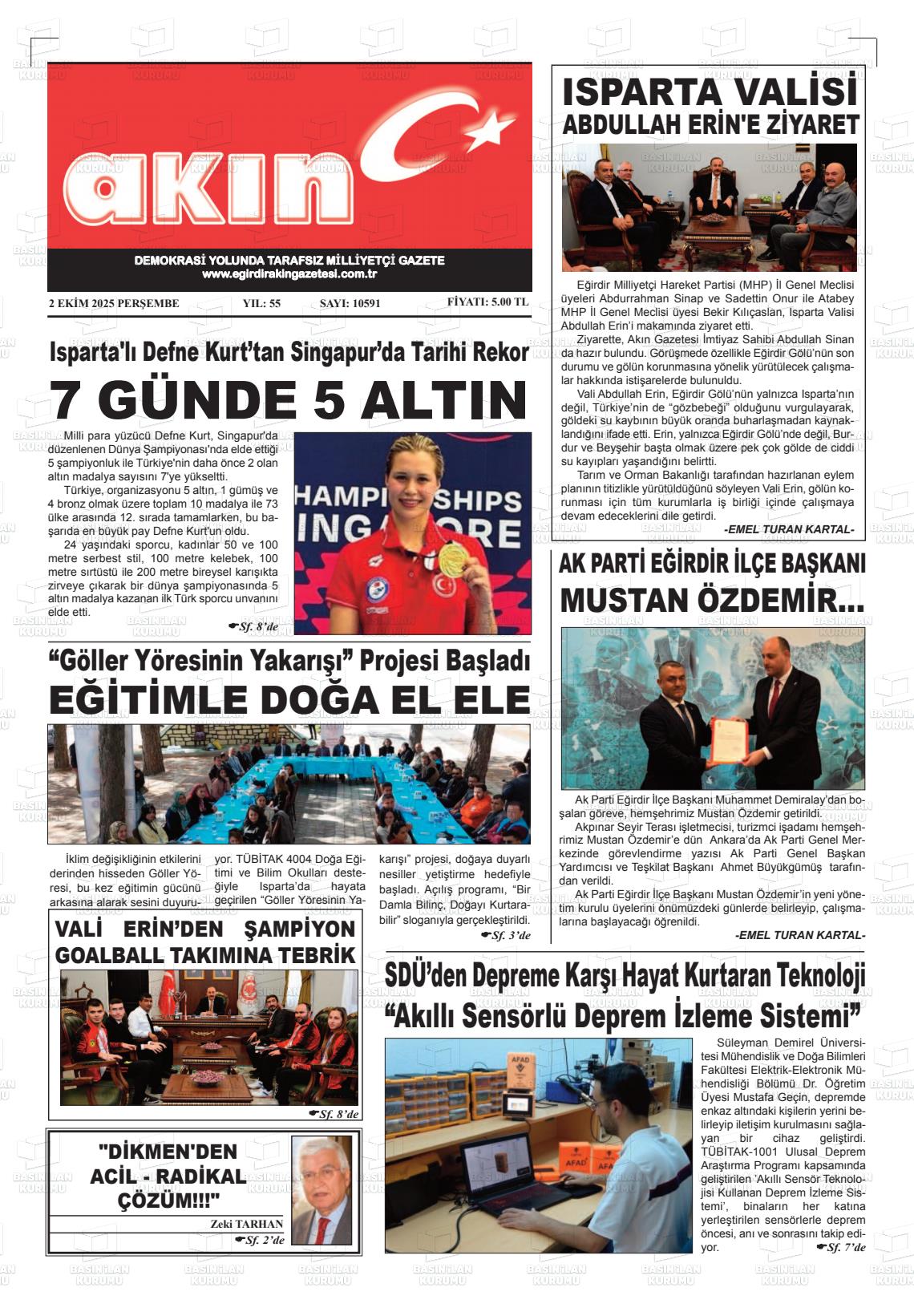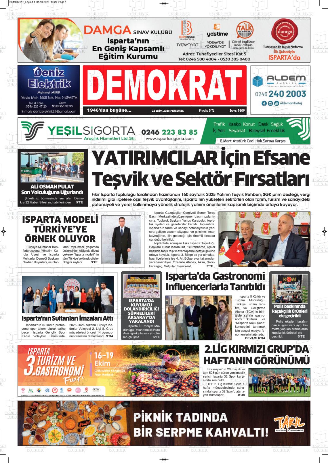 Isparta Yerel Gazeteleri 09 Aralık 2025, Salı Günü Manşeti