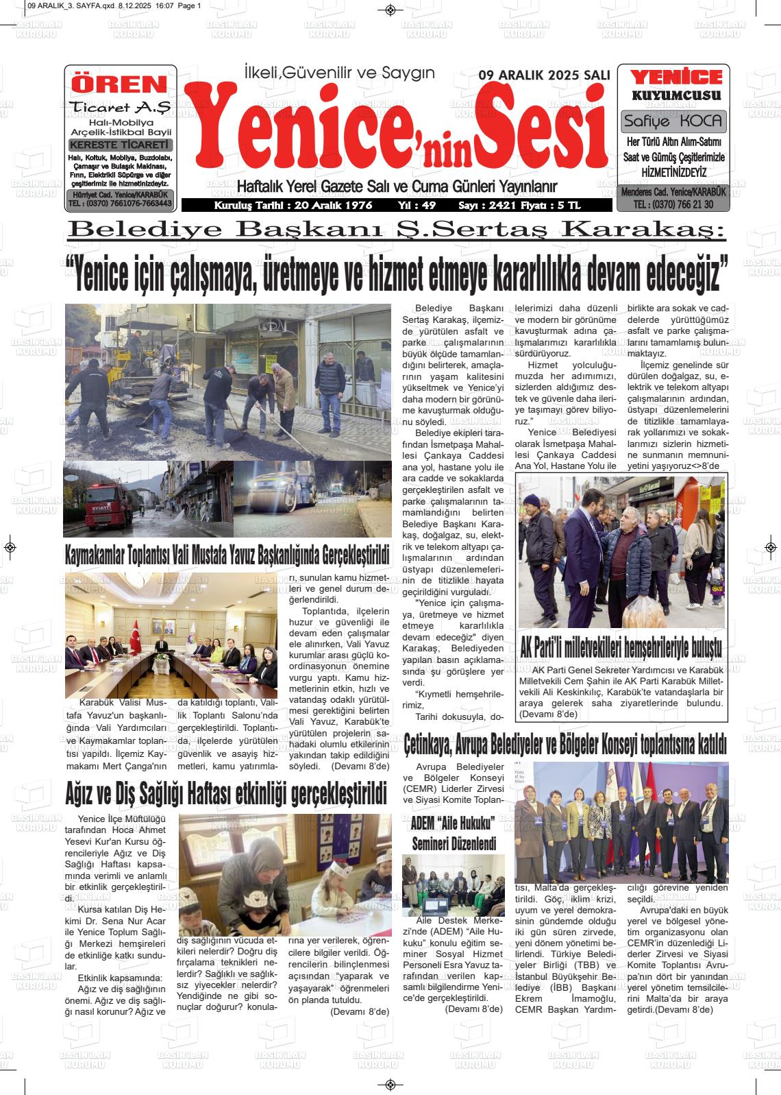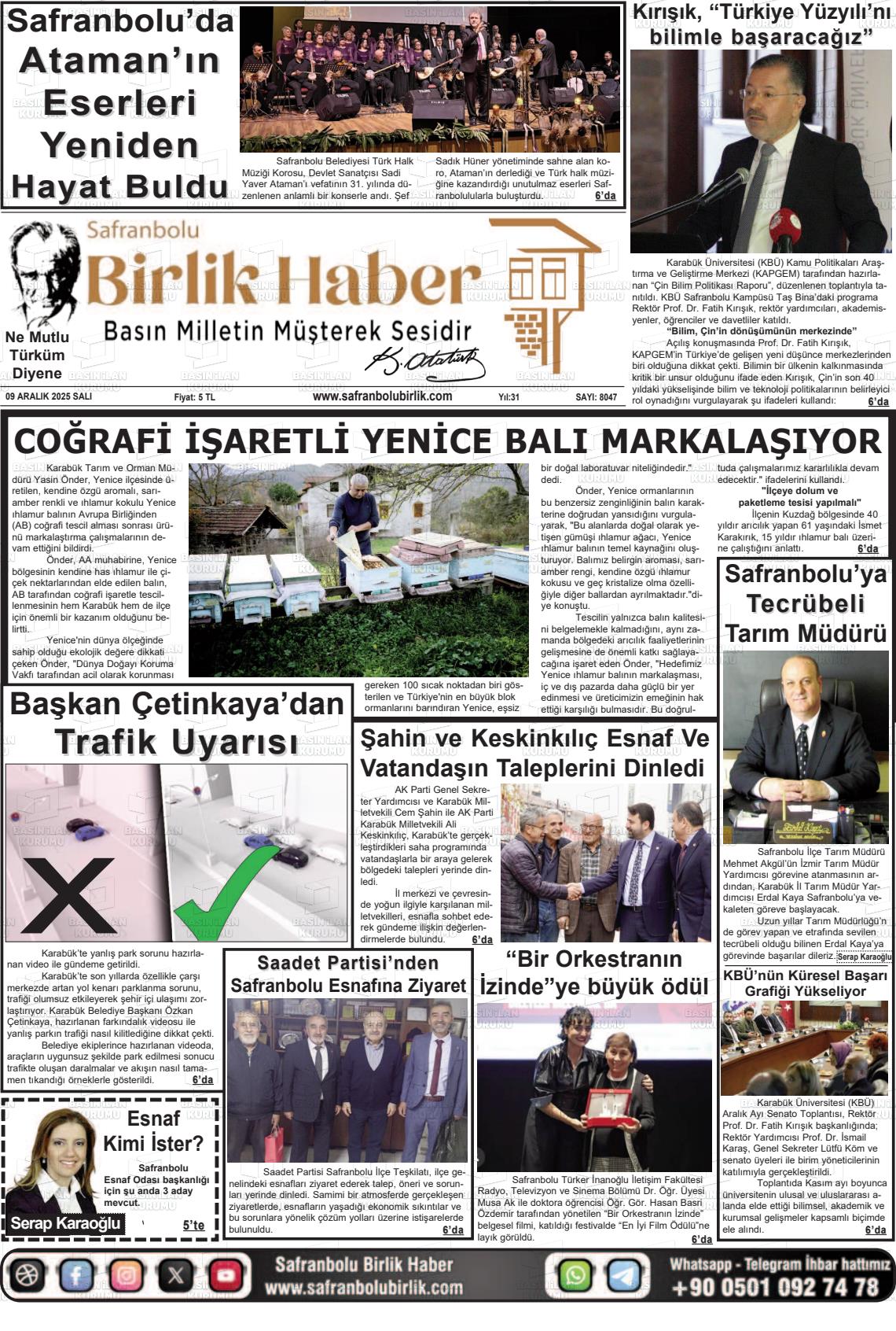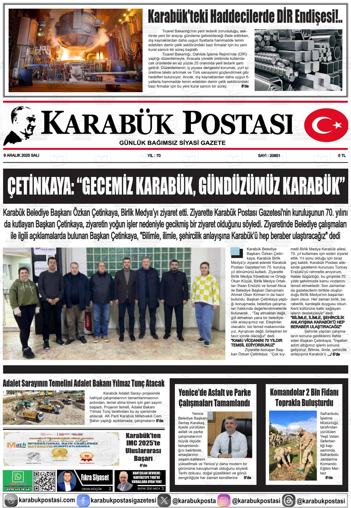 Karabük Yerel Gazeteleri 09 Aralık 2025, Salı Günü Manşeti