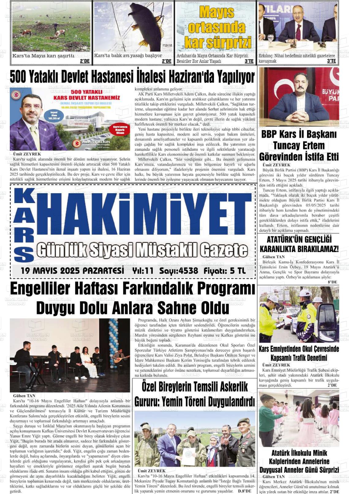 Kars Yerel Gazeteleri 02 Şubat 2026, Pazartesi Günü Manşeti