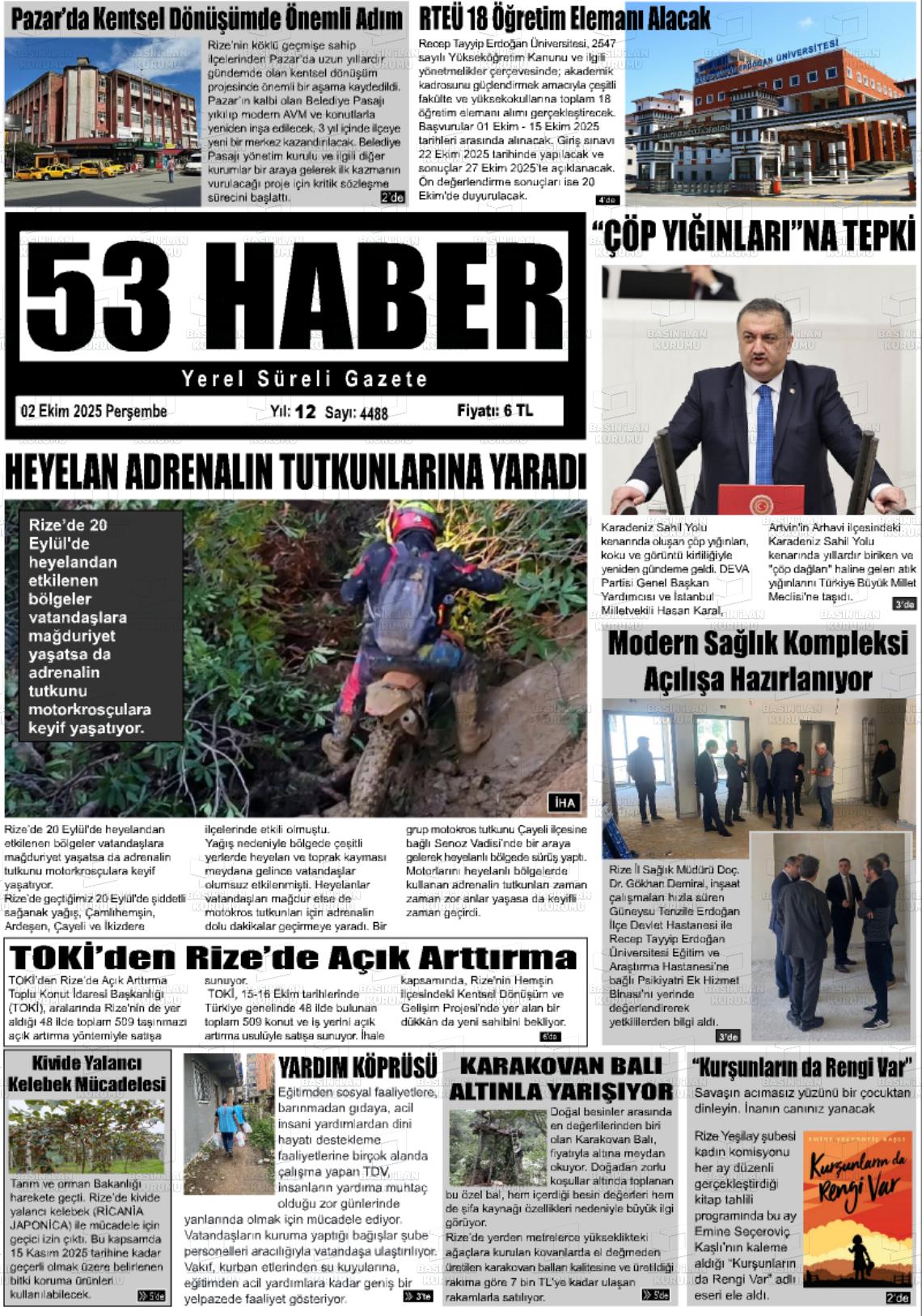 Rİze Yerel Gazeteleri 09 Aralık 2025, Salı Günü Manşeti