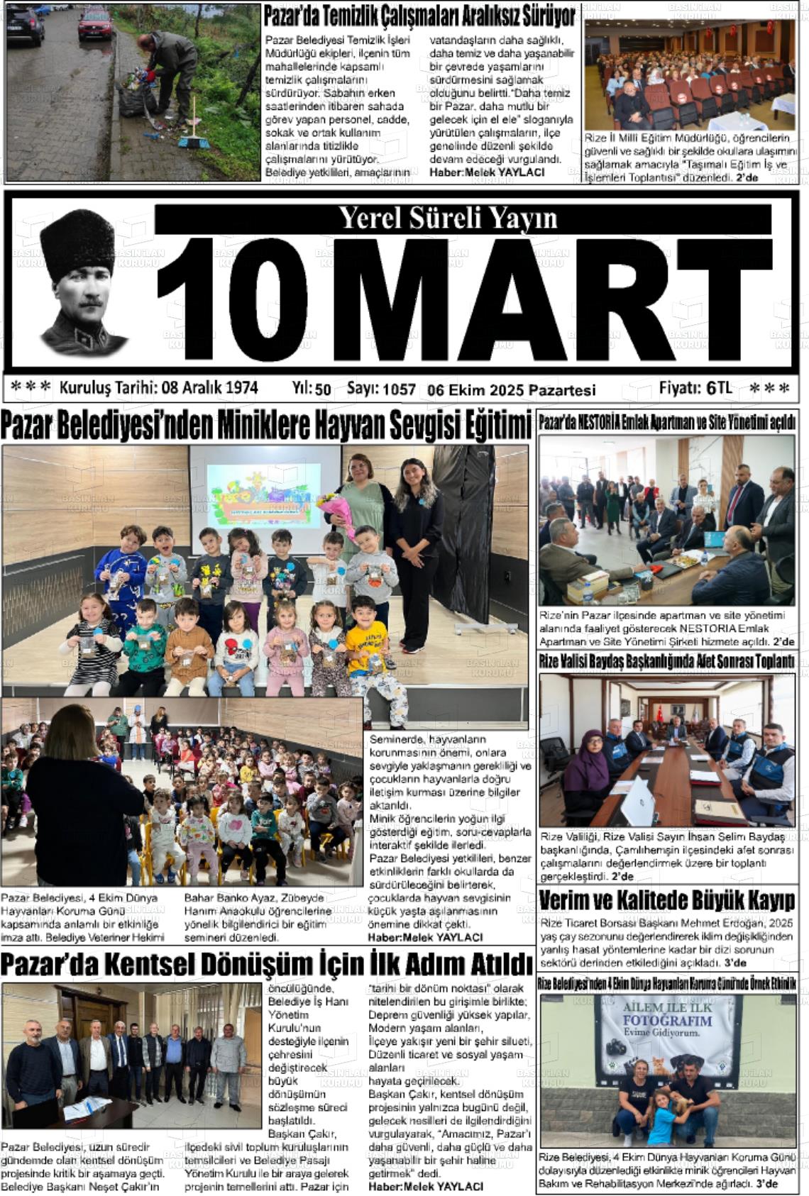 Rİze Yerel Gazeteleri 06 Ekim 2025, Pazartesi Günü Manşeti