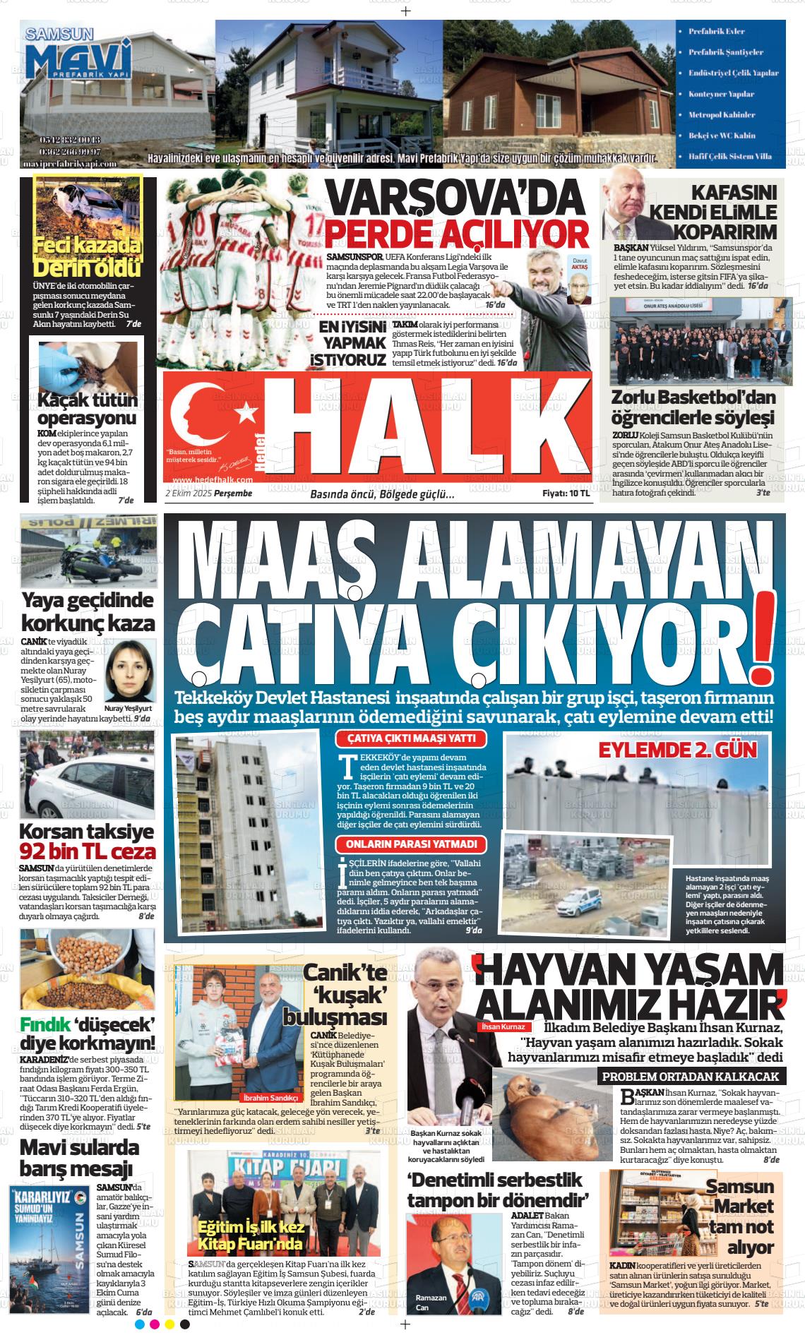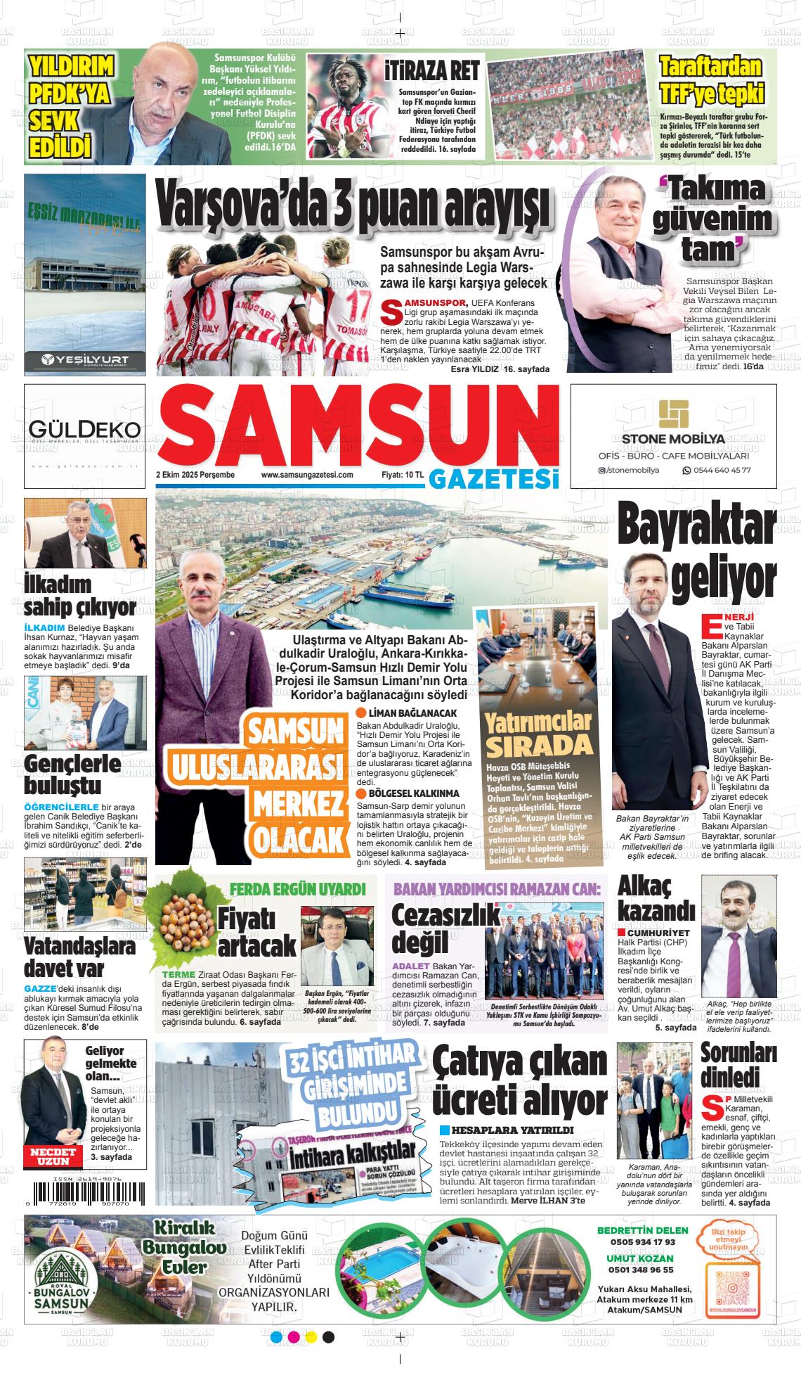 Samsun Yerel Gazeteleri 09 Aralık 2025, Salı Günü Manşeti