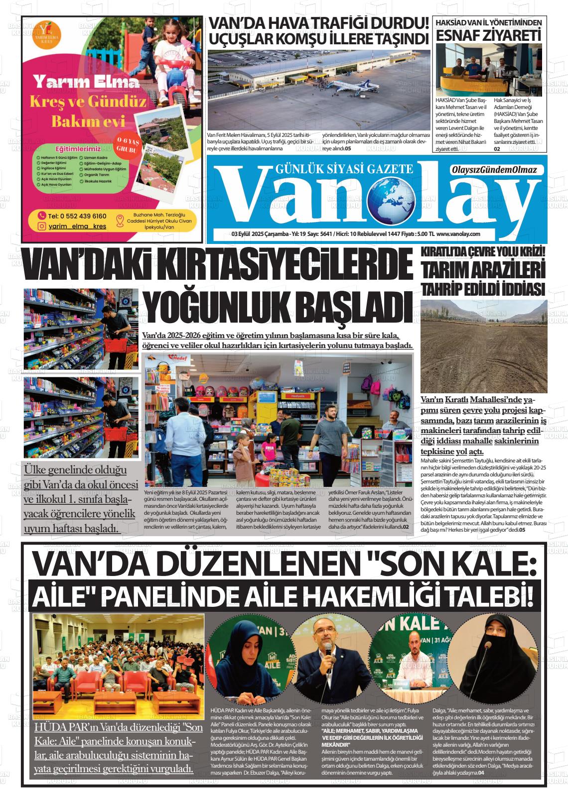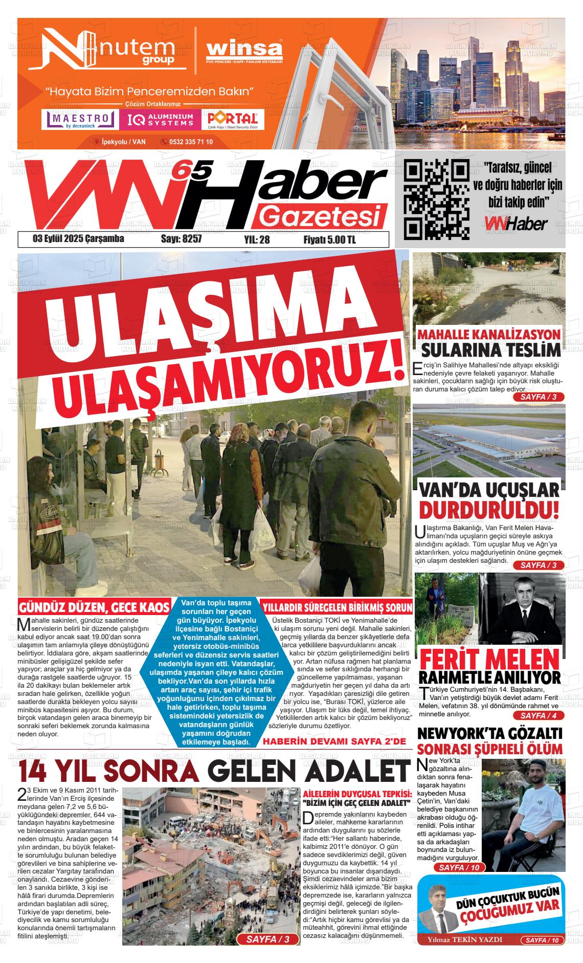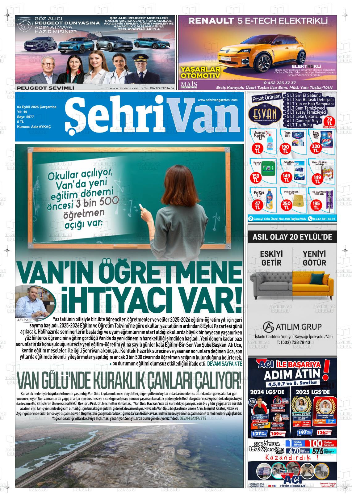 Van Yerel Gazeteleri 09 Aralık 2025, Salı Günü Manşeti