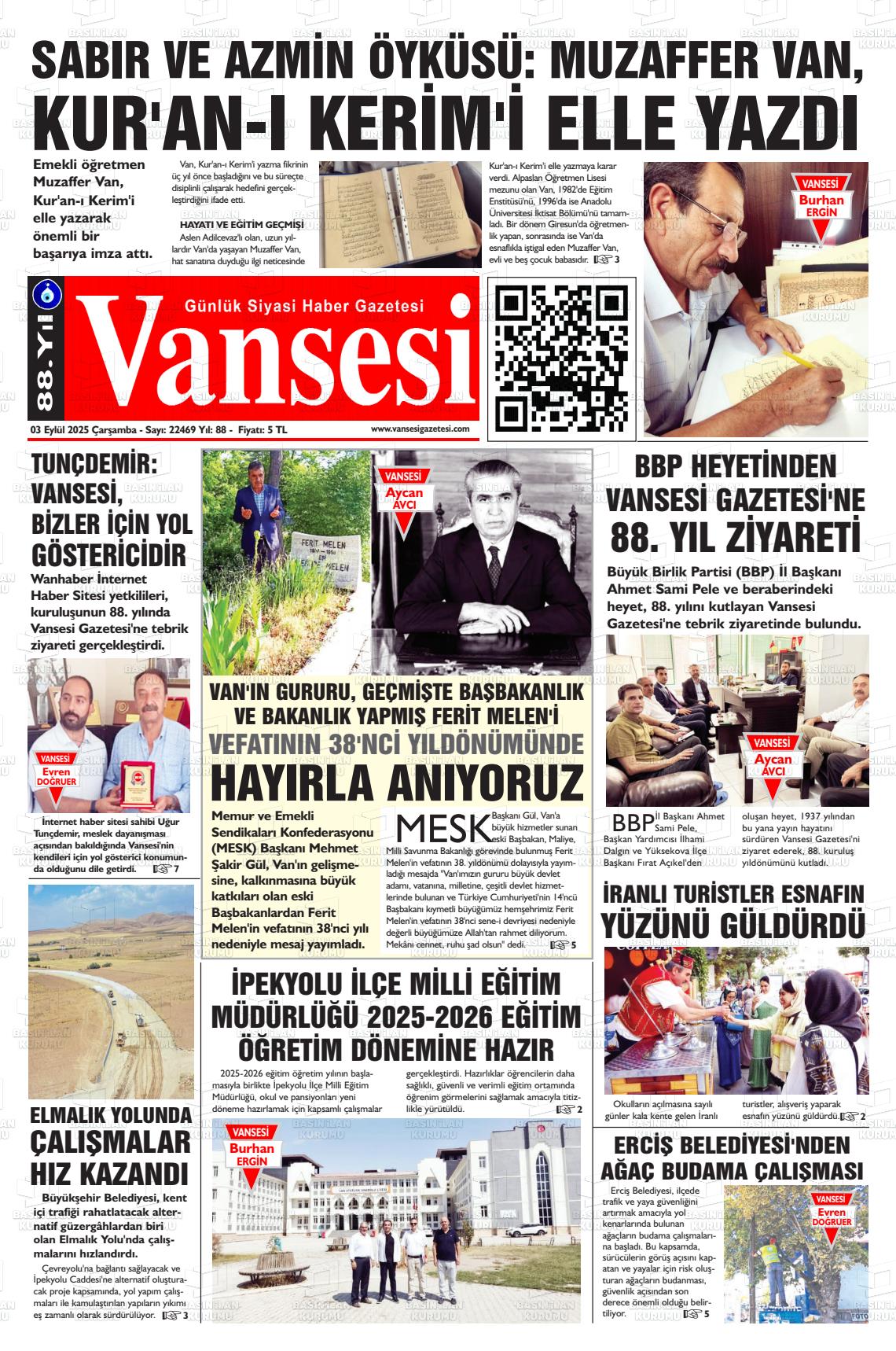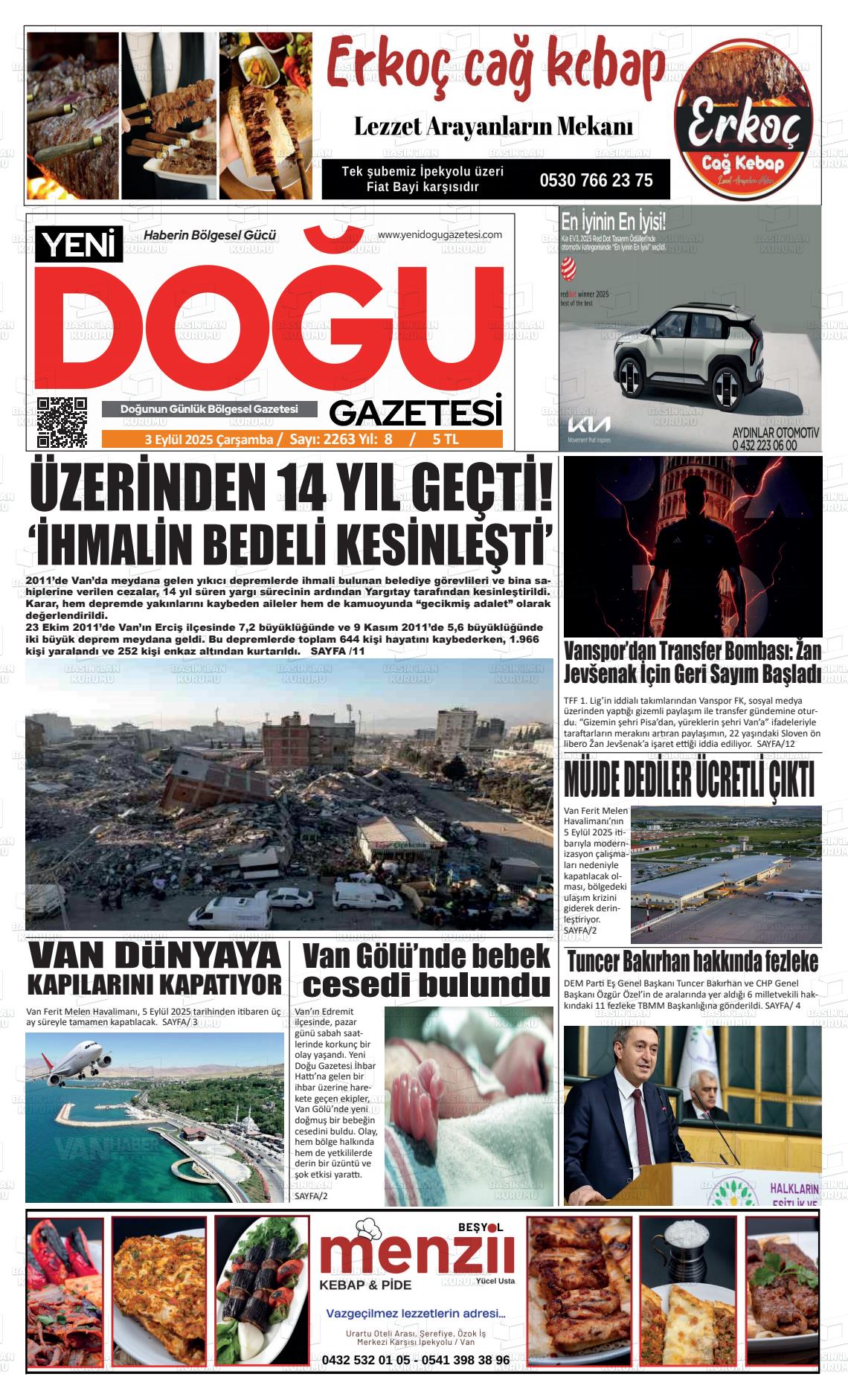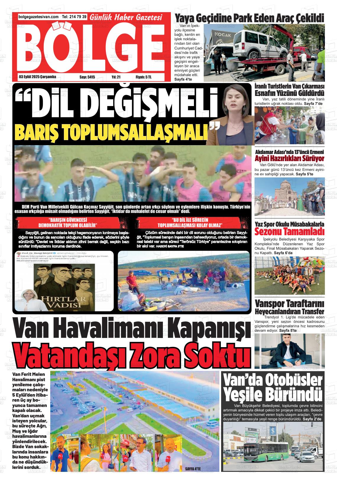 Van Yerel Gazeteleri 09 Aralık 2025, Salı Günü Manşeti