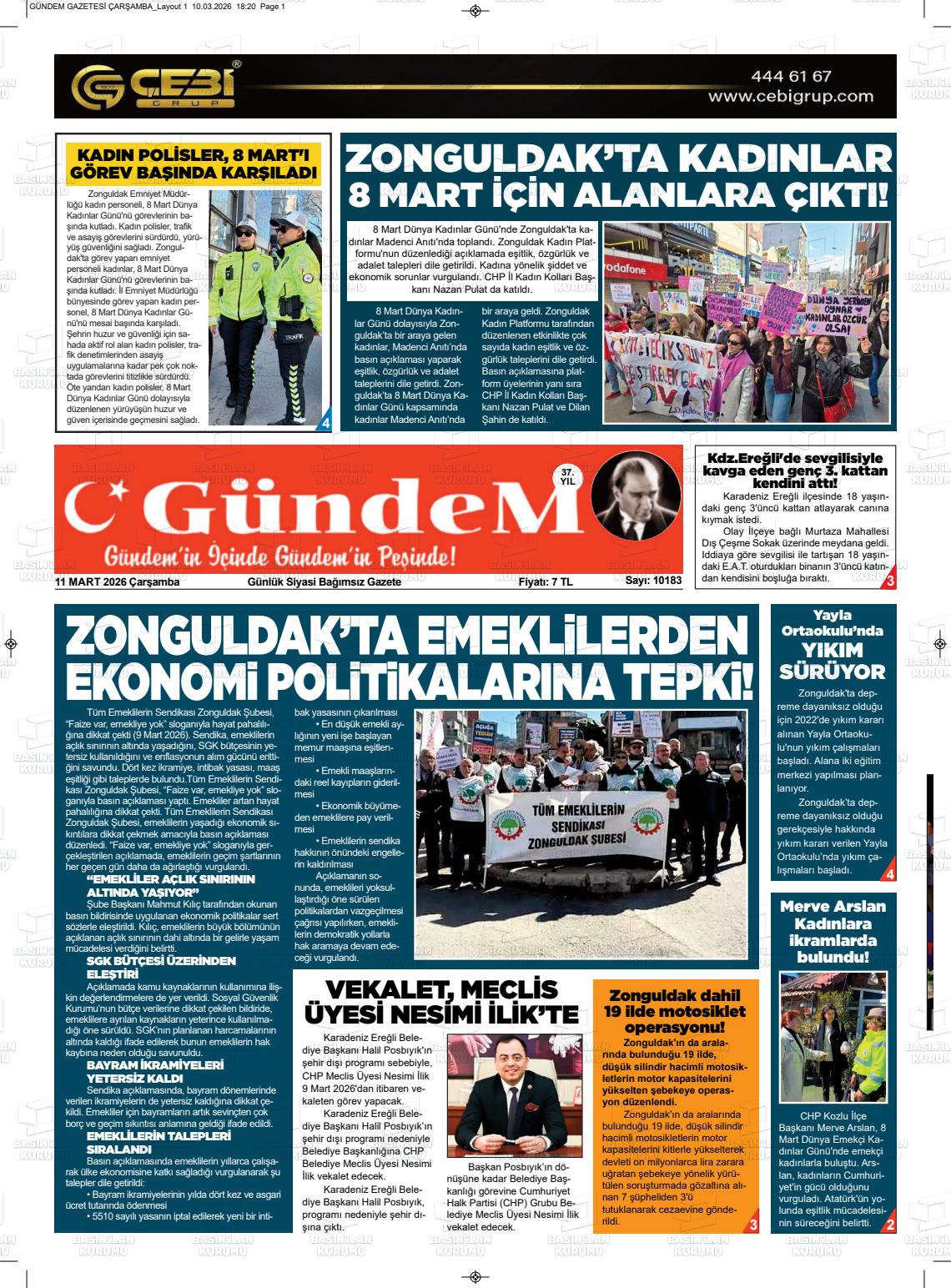 Zonguldak Yerel Gazeteleri 11 Mart 2026, Çarşamba Günü Manşeti